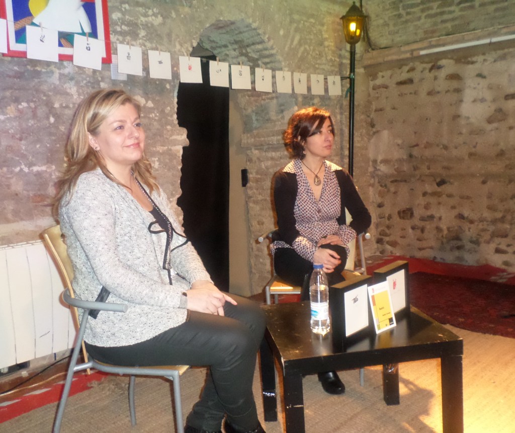 Maribel Mir me acompañó en las presentaciones que hicimos en Zaragoza, foto de la izquierda en La Bóveda del Albergue, y en Lleida, en el Centre Cívic de Balàfia.