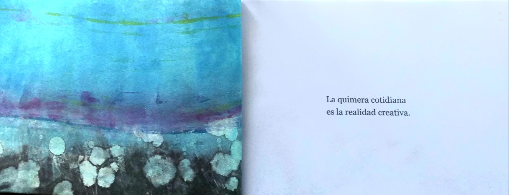Libro de artista compuesto, en 2019, por dieciséis monotipos, sobre papel Super Alfa 250 gr., y once axiomas impresos en papel vegetal. Encuadernación japonesa, 42 páginas. Tamaño: 20 x 29 cm.